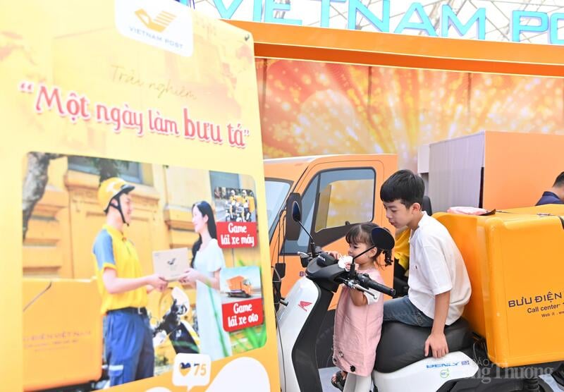 Các em nhỏ háo hức trải nghiệm "Một ngày làm bưu tá" đóng vai người giao hàng