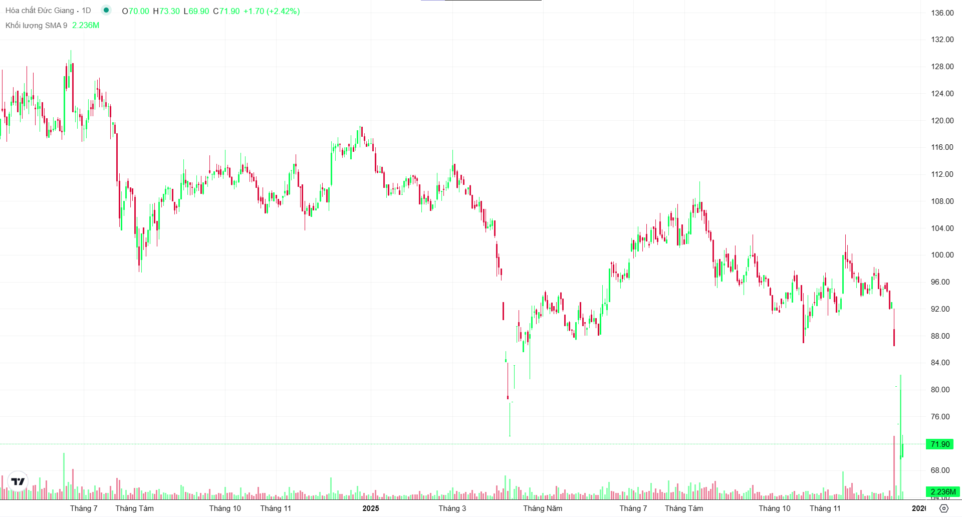 Khi mức độ sụt giảm tài sản của nhóm cổ đông nội bộ được phản ánh rõ nét qua thị giá, diễn biến này càng thu hút sự chú ý của thị trường, trong bối cảnh giới đầu tư đang chờ đợi động thái chính thức từ ban lãnh đạo Hóa chất Đức Giang.