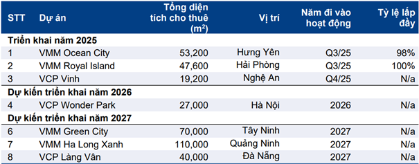 Tỷ lệ lấp đầy các trung tâm thương mại mới khai trương trong thời gian gần đây đều đạt từ 98–100%, củng cố luận điểm rằng nhu cầu thuê mặt bằng bán lẻ vẫn ổn định. Khi các dự án lớn lần lượt đi vào hoạt động, nguồn thu ổn định từ cho thuê kết hợp doanh thu shophouse được kỳ vọng tiếp tục hỗ trợ tăng trưởng lợi nhuận trong nhiều năm tiếp theo.