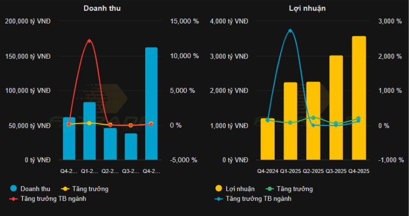 Về kết quả hoạt động, năm 2025 đánh dấu mức tăng trưởng cao của tập đoàn. Doanh thu hợp nhất đạt 332.770 tỷ đồng, tăng mạnh so với năm trước và là mức cao nhất từng ghi nhận. Lợi nhuận trước thuế đạt 26.300 tỷ đồng, trong khi lợi nhuận sau thuế đạt 11.146 tỷ đồng, đều ghi nhận mức tăng đáng kể so với năm 2024.