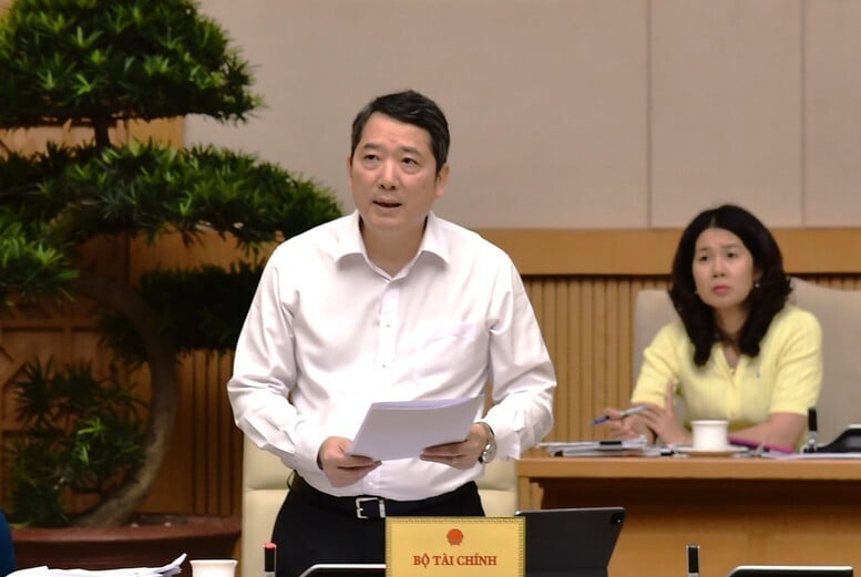 Thứ trưởng Bộ Tài chính Cao Anh Tuấn báo cáo tại cuộc họp - Ảnh: VGP/Trần Mạnh