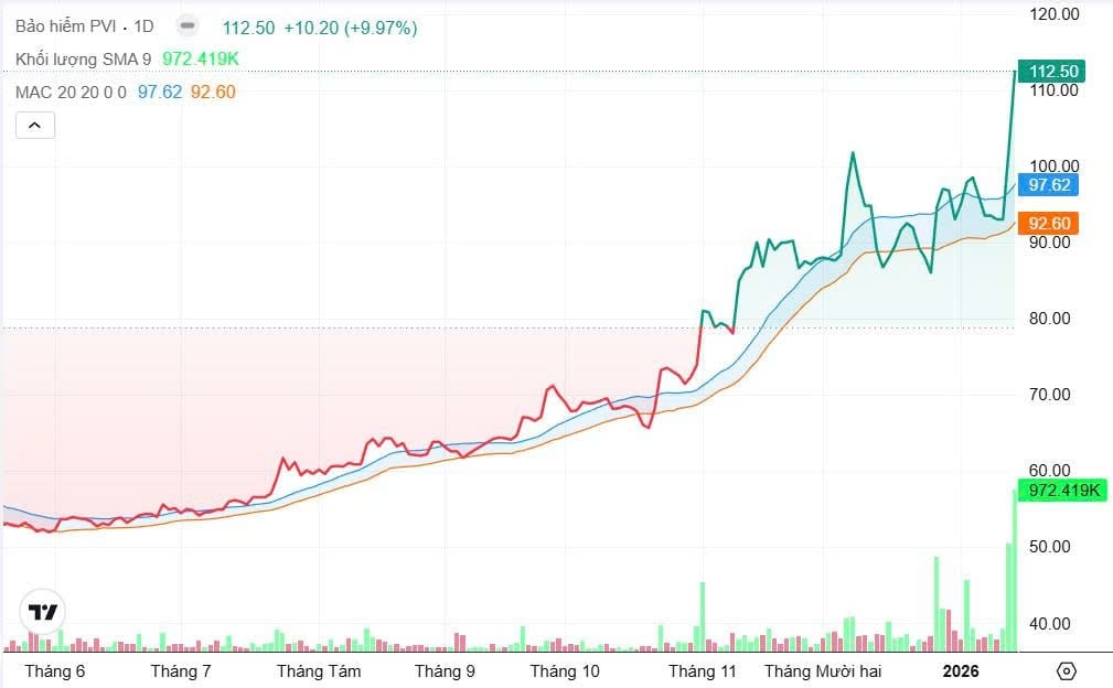 Vốn hoạt động trong lĩnh vực bảo hiểm – nhóm ngành có dòng tiền ổn định, ít biến động theo chu kỳ kinh tế – cổ phiếu PVI từ lâu được xem là lựa chọn mang tính phòng thủ. Tuy nhiên, kể từ nửa cuối năm 2025 đến nay, mã này lại cho thấy một diện mạo khác khi liên tục tăng tốc.