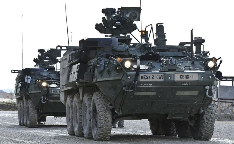 Từ chiến xa chở bộ binh, Stryker nay trở thành cỗ máy chiến đấu tương lai khi mang trong mình vũ khí laser 50kW. Ảnh: Militarnyi