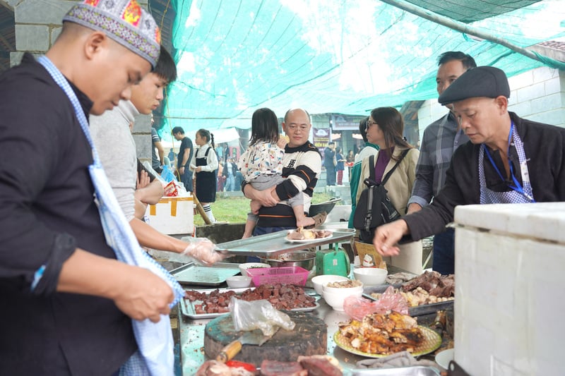 Du khách háo hức trải nghiệm các món ăn của đồng bào dân tộc. Ảnh: Kim Yến