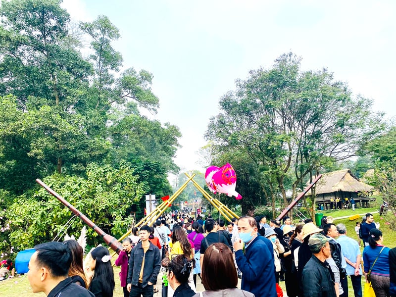 Đông đảo du khách tới thăm quan, trải nghiệm văn hóa tại phiên chợ vùng cao. Ảnh: Kim Yến