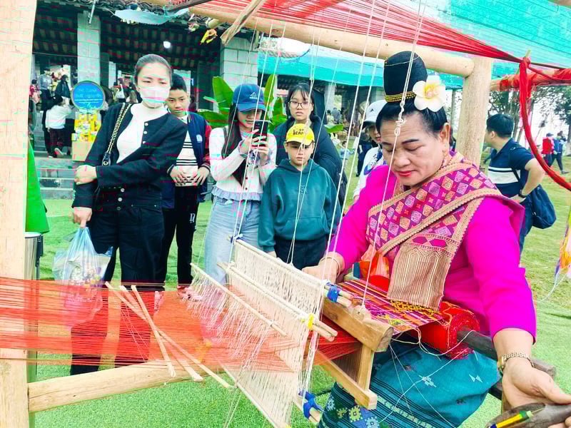 Đồng bào dân tộc trình diễn nghề thủ công truyền thống. Ảnh: Kim Yến