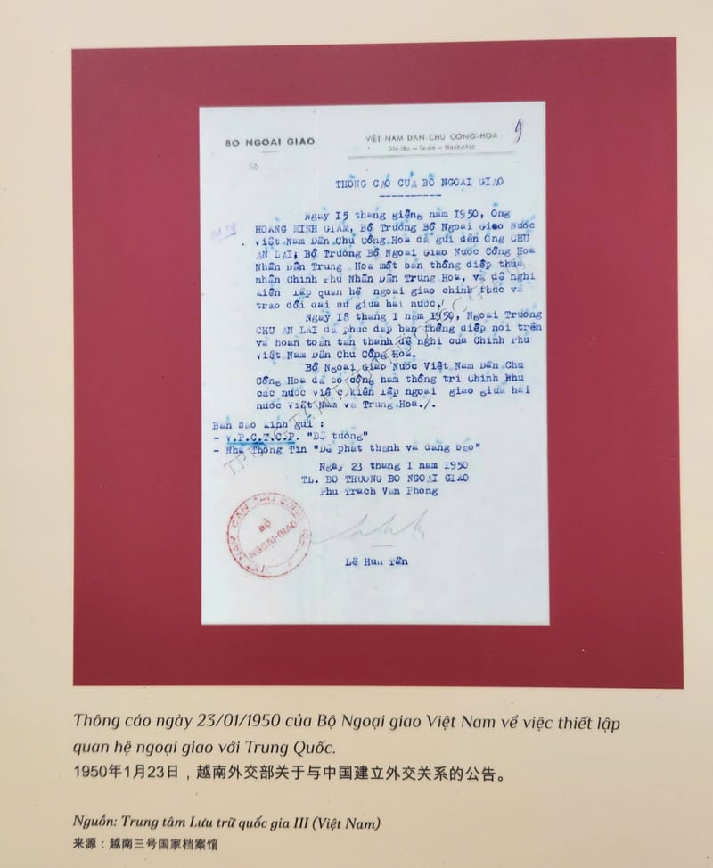 Thông cáo ngày 23/1/1950 của Bộ Ngoại giao Việt Nam về thiết lập quan hệ ngoại giao với Trung Quốc.