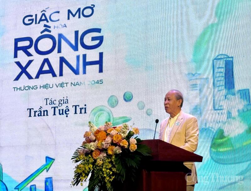 Tác giả Trần Tuệ Tri chia sẻ tại chương trình giới thiệu sách “Giấc mơ hóa Rồng Xanh - Thương hiệu Việt Nam 2045”. Ảnh: Diệu Anh