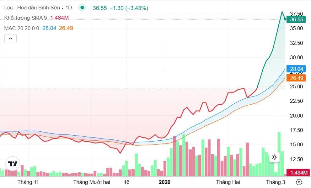 Tính từ giữa tháng 12/2025 đến nay, thị giá BSR đã tăng hơn 180%, lọt nhóm tăng mạnh nhất HoSE trong cùng giai đoạn. Điều đáng nói là đà tăng này không chỉ đến từ hiệu ứng dòng tiền ngắn hạn, mà được “kích hoạt” bởi nhiều lớp câu chuyện khác nhau – vừa mang tính thị trường, vừa mang tính cấu trúc dài hạn của doanh nghiệp.