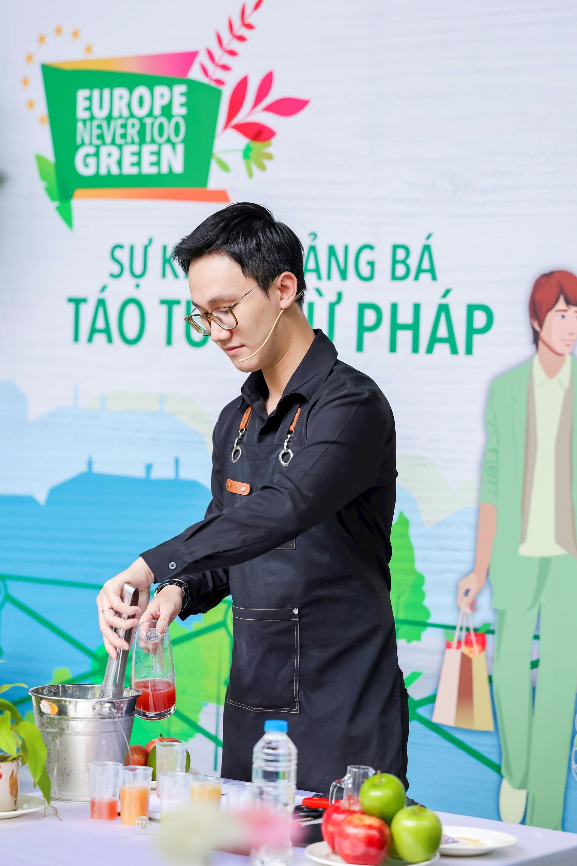 Tại đây, mixologist Phương Huy đã dẫn dắt khách mời khám phá sự tươi ngon, ưu điểm của táo Pháp qua những công thức đồ uống độc đáo và món ăn kết hợp tinh tế.