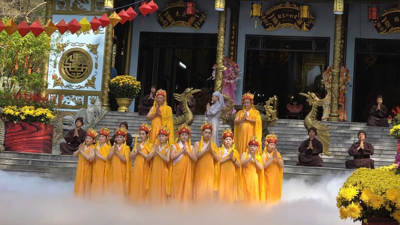 Tiết mục biểu diễn nghệ thuật tại lễ hội đền Huyền Trân. Ảnh: P.T. Hải