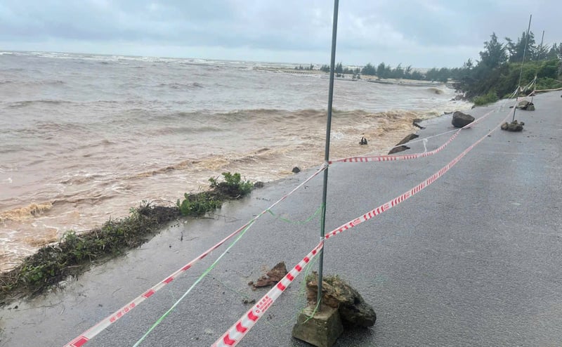 Hạ tầng giao thông, các tuyến đường ven biển bị xâm thực sâu vào đất liền, sạt lở nghiêm trọng sau trận lũ lịch sử. Ảnh: Nguyễn Tuấn