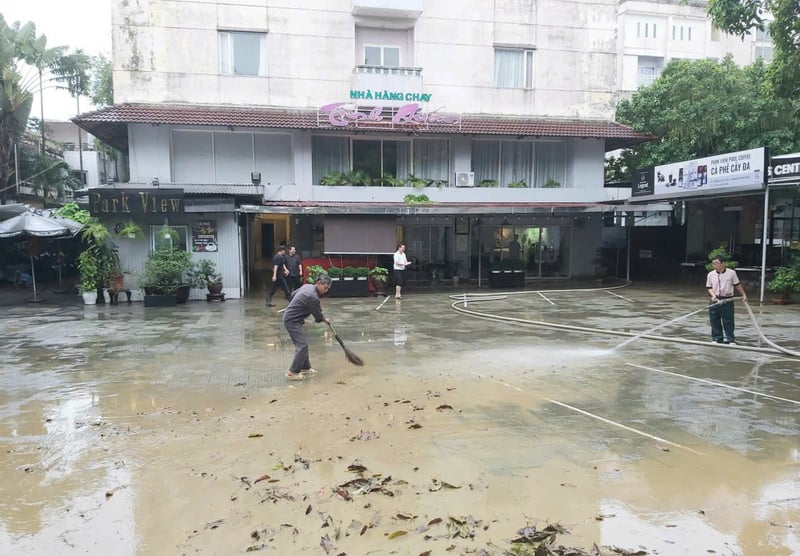 Sáng 29/10, người dân tại thành phố Huế đã bắt đầu công tác dọn vệ sinh sau lũ lụt. Ảnh: Nguyễn Tuấn