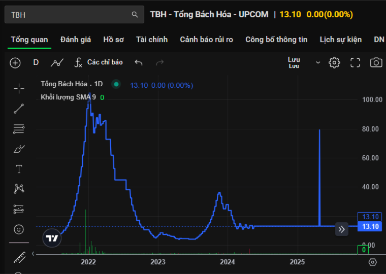 Cụ thể, TBH rời sàn trong bối cảnh cổ phiếu đã bị đình chỉ giao dịch trước đó. Thị giá của mã này dừng lại ở mức 13.100 đồng/cổ phiếu và không ghi nhận giao dịch phát sinh. TBH từng là cổ phiếu gây chú ý trên UPCoM khi mới đăng ký giao dịch vào năm 2021, với giai đoạn tăng giá mạnh và đạt mức cao nhất trên 100.000 đồng/cổ phiếu vào đầu năm 2022. Tuy nhiên, sau khi hiệu ứng này qua đi, cổ phiếu nhanh chóng quay đầu giảm sâu và rơi vào trạng thái giao dịch thưa thớt, trước khi gần như “đóng băng” trong thời gian dài.