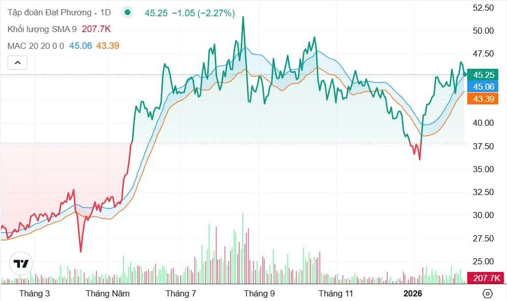 Diễn biến mua ròng của Dragon Capital diễn ra không lâu sau khi Đạt Phương công bố báo cáo tài chính hợp nhất quý IV/2025 với kết quả kinh doanh tích cực. Năm 2025, doanh nghiệp ghi nhận doanh thu thuần gần 4.484 tỷ đồng và lợi nhuận sau thuế đạt 327 tỷ đồng, lần lượt tăng hơn 25% và gần 46% so với năm trước. Kết quả lợi nhuận này cũng vượt hơn 15% so với kế hoạch 284 tỷ đồng đã đề ra từ đầu năm.