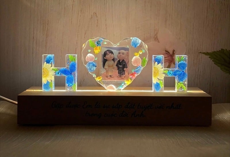 Các mẫu đèn ngủ sử dụng hoa khô thật, kết hợp ánh đèn vàng ấm áp, tạo hiệu ứng trang trí tinh tế cho không gian phòng ngủ hoặc góc làm việc. Phần thân đèn hoặc khung tranh có thể in, khắc tên và lồng ảnh theo yêu cầu, đảm bảo mỗi sản phẩm là một phiên bản duy nhất. Sự kết hợp giữa yếu tố thẩm mỹ và giá trị tinh thần giúp sản phẩm này trở thành lựa chọn nổi bật trong mùa 8/3 năm nay.