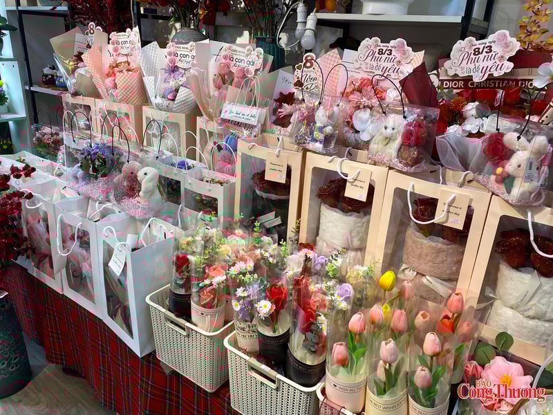 Bên cạnh hoa tươi truyền thống, thị trường quà tặng dịp 8/3 năm nay có sự gia tăng mạnh ở nhóm sản phẩm cá nhân hóa. Nhiều cửa hàng tung ra các combo kết hợp hoa tươi, hoa sáp với gấu bông, mỹ phẩm, nến thơm, phụ kiện thủ công hoặc thiệp in ảnh theo yêu cầu, đáp ứng nhu cầu đa dạng của khách hàng trẻ.