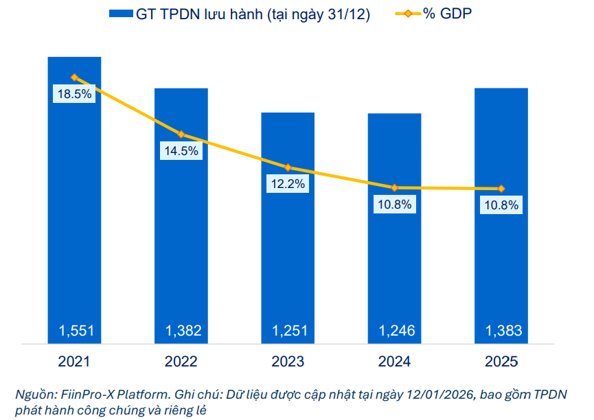 Năm 2025 ghi nhận sự trở lại rõ nét của thị trường Trái phiếu doanh nghiệp" data-glossary-english="Corporate Bond" data-glossary-def="Chứng khoán nợ do doanh nghiệp phát hành để huy động vốn.">trái phiếu doanh nghiệp (TPDN) với quy mô phát hành tăng trưởng đáng kể, trong khi khung pháp lý và cơ sở nhà đầu tư cũng được tiếp tục hoàn thiện.