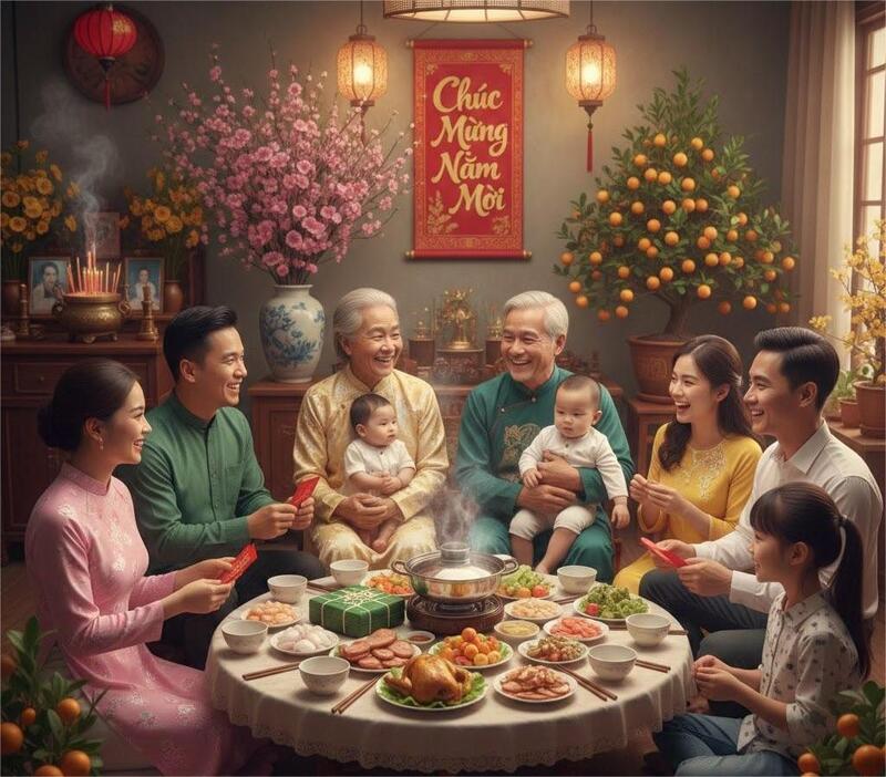 Nếu nhìn vẻ bên ngoài, ăn Tết có thể chỉ là một kỳ nghỉ dài với bánh chưng, giò lụa, hoa đào, hoa mai, lì xì và pháo hoa. Nhưng với người Việt, Tết Nguyên đán còn mang một giá trị tinh thần rất lớn, sâu xa và thiêng liêng. Đó là dịp để cả gia đình, từ người già đến trẻ nhỏ, từ con cháu đi xa đến người thân ở quê, cùng sum vầy bên nhau dưới một mái nhà.