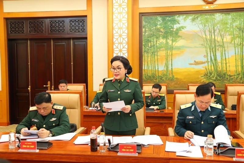 Thiếu tướng Phan Thị Hoài Vân, Phó chủ nhiệm Tổng cục Công nghiệp quốc phòng trình bày Đề án.