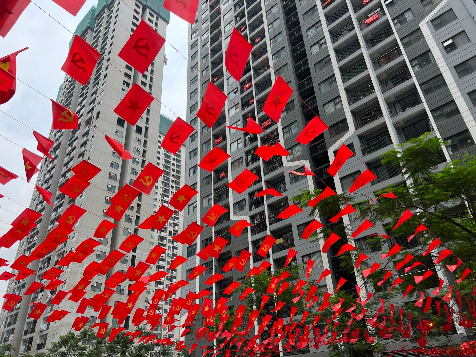 Không chỉ hiện diện trên những trục đường lớn, không khí chào mừng Đại hội lần thứ XIV của Đảng còn lan tỏa sâu rộng vào từng con ngõ, từng khu dân cư của Thủ đô. Từ các khu chung cư cao tầng đến những tuyến phố cổ, hình ảnh cờ đỏ sao vàng rực rỡ được treo đồng loạt đã tạo nên một bức tranh sinh động, thể hiện sự đồng thuận và hưởng ứng của người dân.