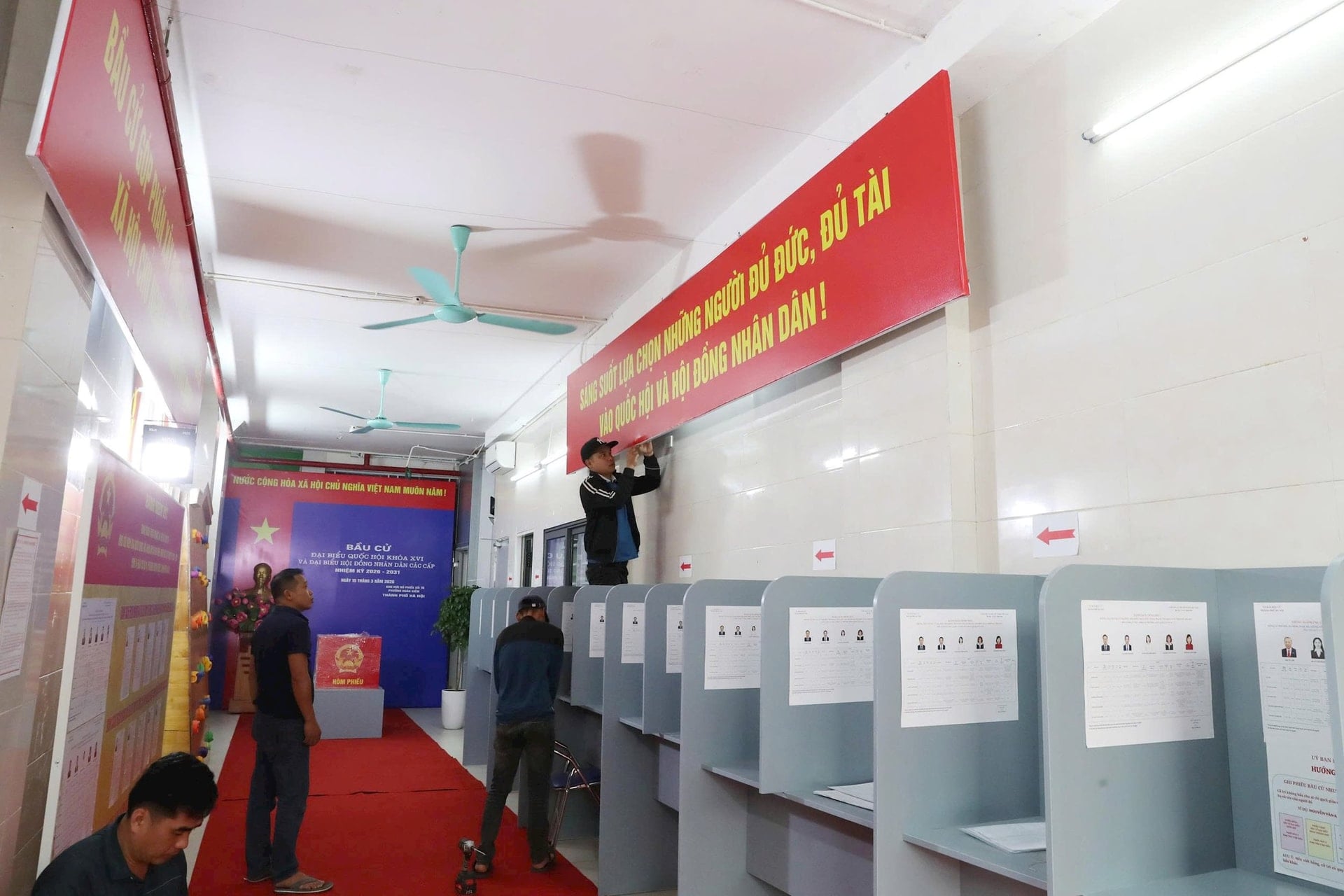 Tại các điểm bầu cử, những khâu công việc chuẩn bị cuối cùng cũng đang được khẩn trương hoàn tất. Tất cả đều thực hiện công việc, nhiệm vụ của mình trong niềm vui tươi, phấn khởi. Ai cũng thấy tự hào khi được đóng góp phần công sức nhỏ bé của mình vào Ngày hội bầu cử của đất nước.