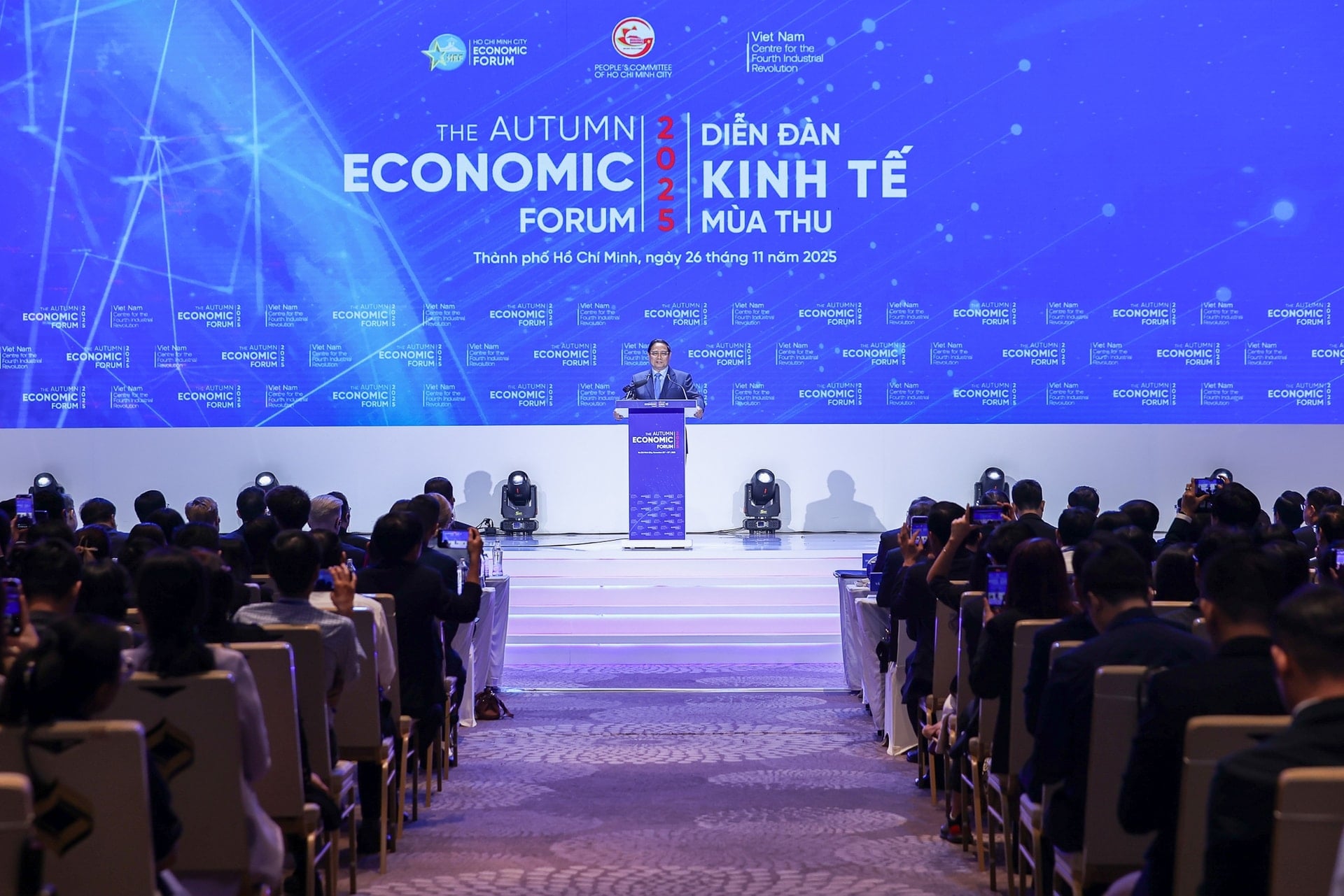 <#div>Thủ tướng nêu rõ, Diễn đàn Kinh tế mùa Thu năm 2025 là sự kiện trang trọng thể hiện rõ nét sự hội tụ trí tuệ, sẻ chia tầm nhìn và hành động, lan toả lợi ích, tạo động lực của Việt Nam cùng với cộng đồng quốc tế - Ảnh: VGP<#span><#figcaption><#figure>
