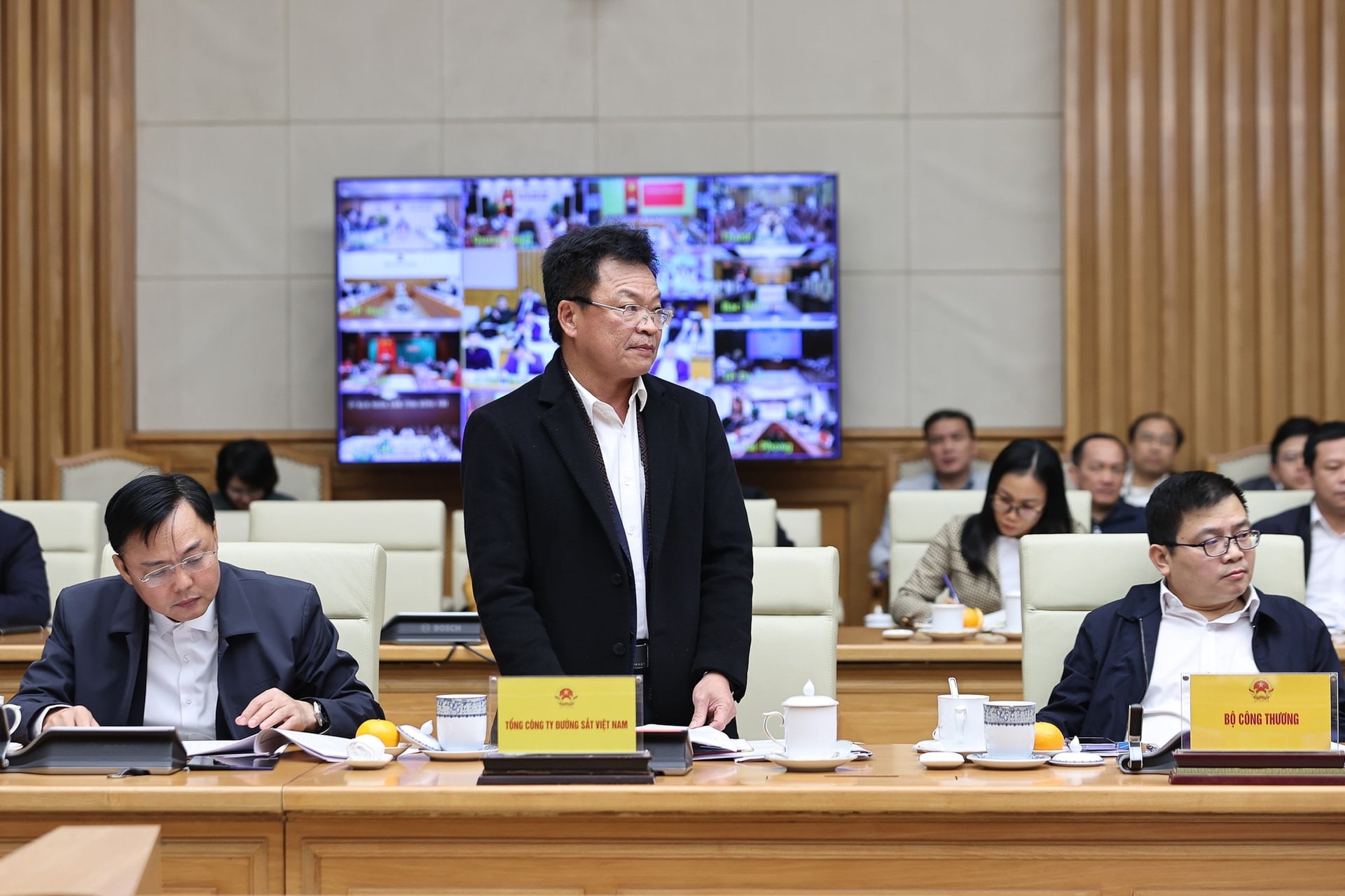 Về nhiệm vụ quản lý nhà nước liên quan ngành công nghiệp đường sắt, Bộ Công Thương và các bộ ngành phải phối hợp trình Chính phủ trước 15/1 các nghị định về giao việc, đặt hàng. Thủ tướng yêu cầu khẩn trương báo cáo lại về đề án tái cơ cấu Tổng Công ty Đường sắt và giao Tổng Công ty này xây dựng dự án phát triển công nghiệp đường sắt.