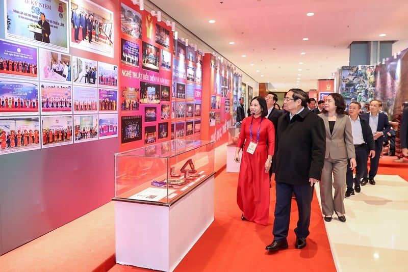 margin: 15px auto;" />Thủ tướng Phạm Minh Chính kiểm tra khu trưng bày ảnh về phong trào thi đua yêu nước. Ảnh: VGP/Nhật Bắc