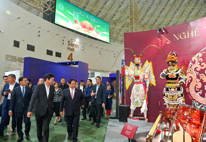 Thủ tướng động viên các địa phương, doanh nghiệp tham gia trưng bày tại Hội chợ. Tất cả các công đoạn chuẩn bị đã sẵn sàng cho đêm khai mạc sẽ diễn ra vào tối mai (25/10).