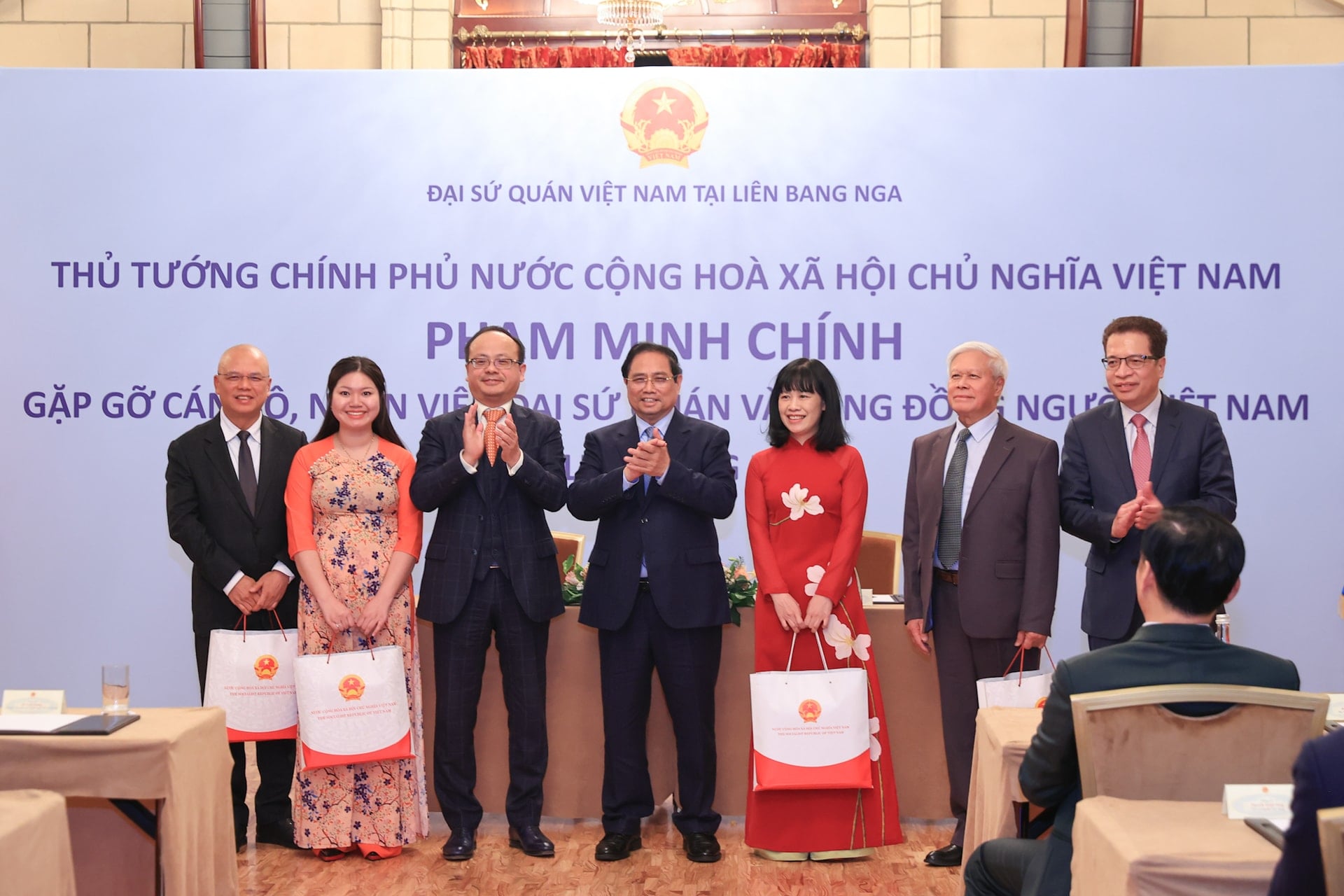 Thủ tướng Phạm Minh Chính gặp gỡ cán bộ, nhân viên Đại sứ quán và cộng đồng người Việt Nam tại Liên bang Nga