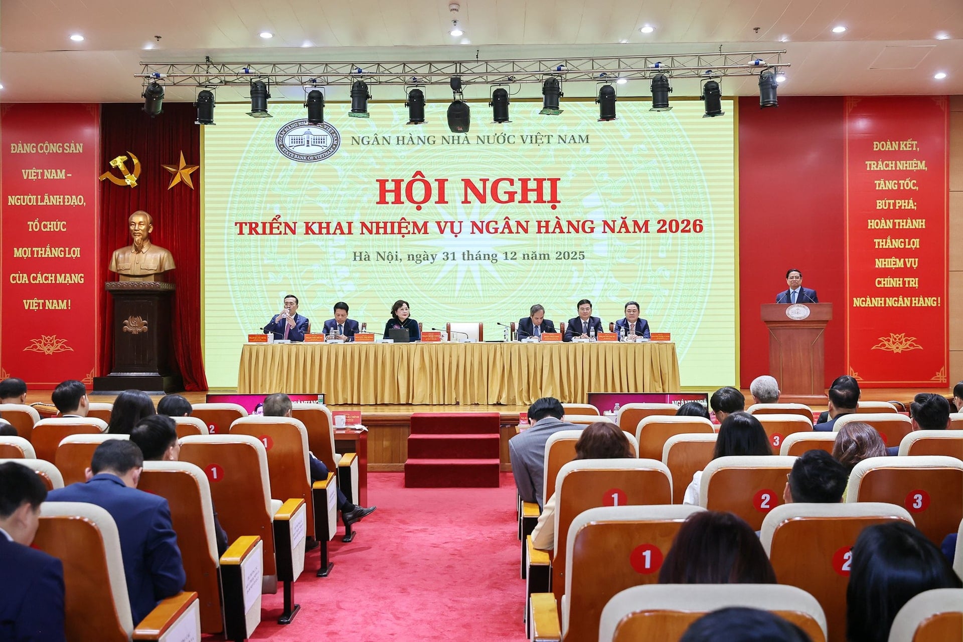 Thủ tướng cho biết, năm 2026 là năm có ý nghĩa quan trọng, là năm diễn ra Đại hội lần thứ XIV của Đảng, năm đầu triển khai Nghị quyết Đại hội Đảng XIV và Kế hoạch 5 năm 2026-2030; Thủ tướng nêu rõ, ngành Ngân hàng phải góp phần kiểm soát lạm phát, ổn định kinh tế vĩ mô, thúc đẩy tăng trưởng 2 con số, bảo đảm các cân đối lớn của nền kinh tế, nâng cao đời sống vật chất và tinh thần của nhân dân; hướng tới thực hiện thành công 2 mục tiêu chiến lược 100 năm.