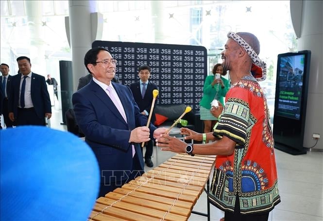 Thủ tướng Phạm Minh Chính tham dự khai trương phiên giao dịch tại Thị trường Chứng khoán Johannesburg. Ảnh: TTXVN<#figcaption><#figure>