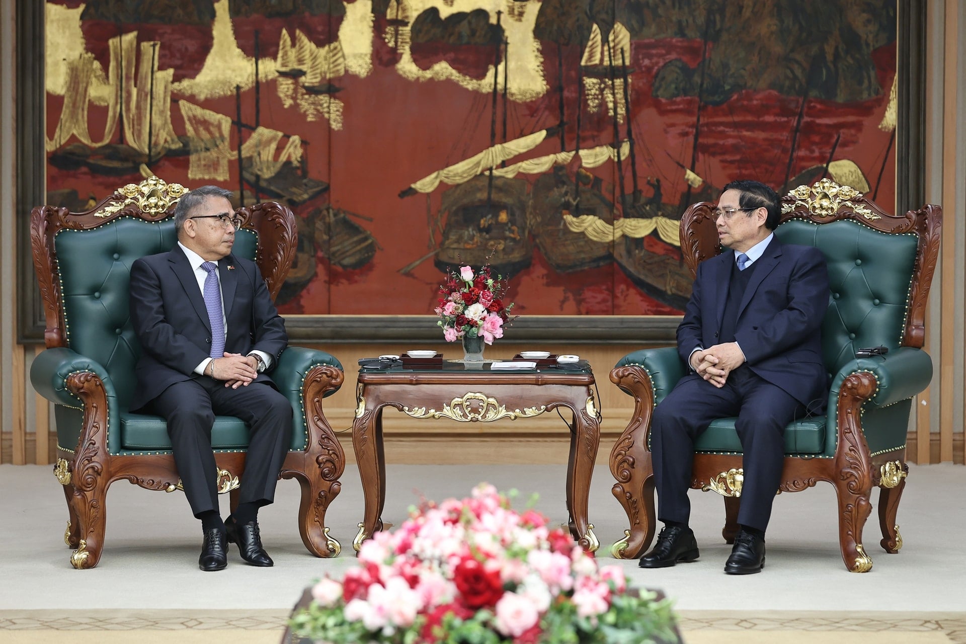 Thủ tướng đề nghị hai bên tăng cường xúc tiến thương mại, đầu tư; tiếp tục củng cố hợp tác biển và đại dương; hợp tác chống biến đổi khí hậu, ứng phó thảm họa thiên tai và tìm kiếm cứu nạn; phối hợp xử lý các vụ việc liên quan đến phòng ngừa đánh bắt cá bất hợp pháp, không khai báo và không theo quy định (IUU); thúc đẩy hợp tác trên các lĩnh vực tiềm năng như nông nghiệp, khoa học, công nghệ, đổi mới sáng tạo, chuyển đổi số, xây dựng cơ sở dữ liệu chung ASEAN, phát triển nguồn nhân lực chất lượng cao…