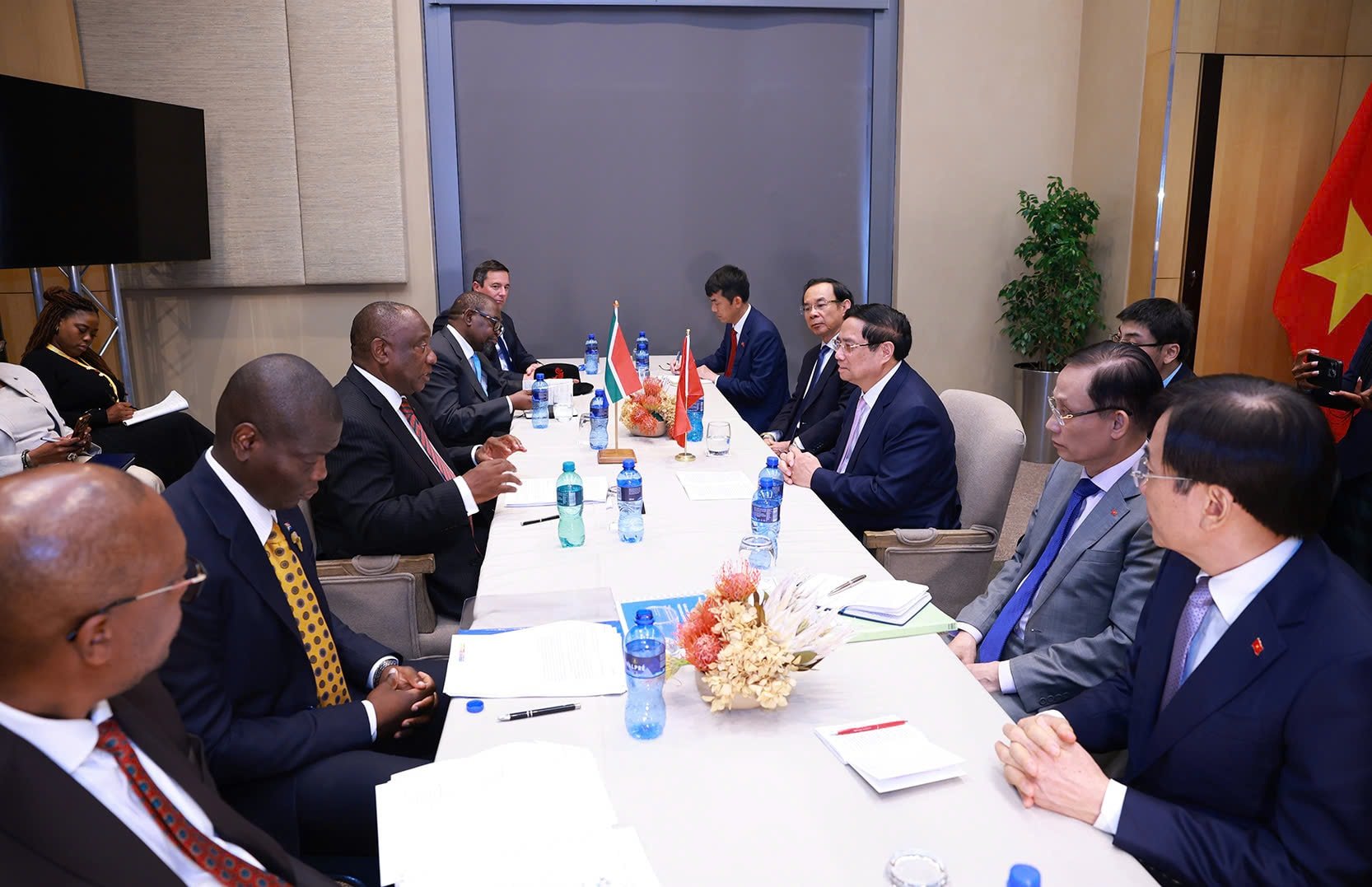 Triển khai cam kết trong chuyến thăm cấp Nhà nước đến Việt Nam của Tổng thống Nam Phi, Thủ tướng Chính phủ Phạm Minh Chính và Tổng thống Nam Phi Cyril Ramaphosa đã chính thức tuyên bố nâng cấp quan hệ Việt Nam - Nam Phi lên Đối tác Chiến lược, dấu mốc lịch sử đưa quan hệ song phương đi vào chiều sâu, thực chất, hiệu quả, trên cơ sở tin cậy.<#p>