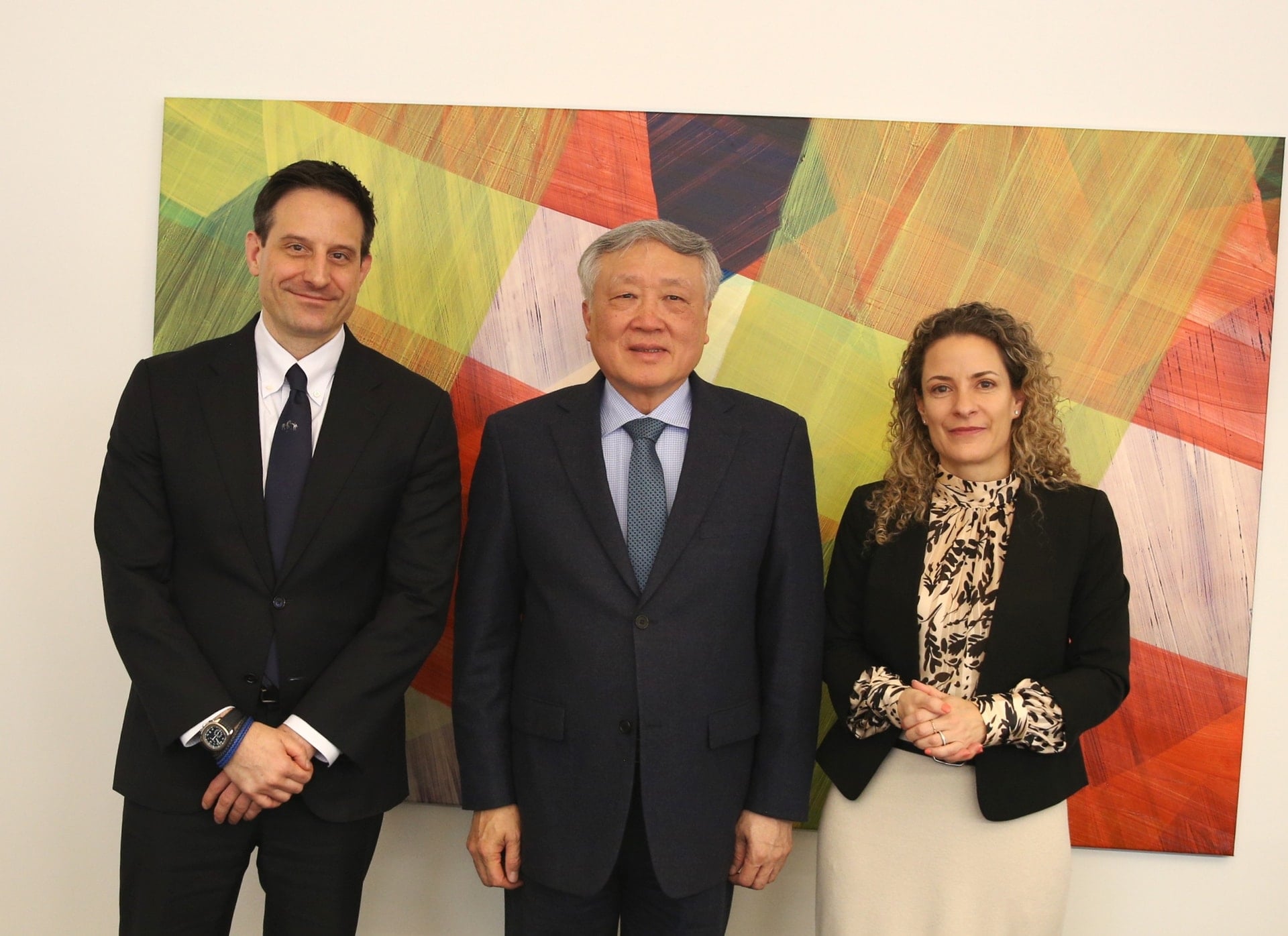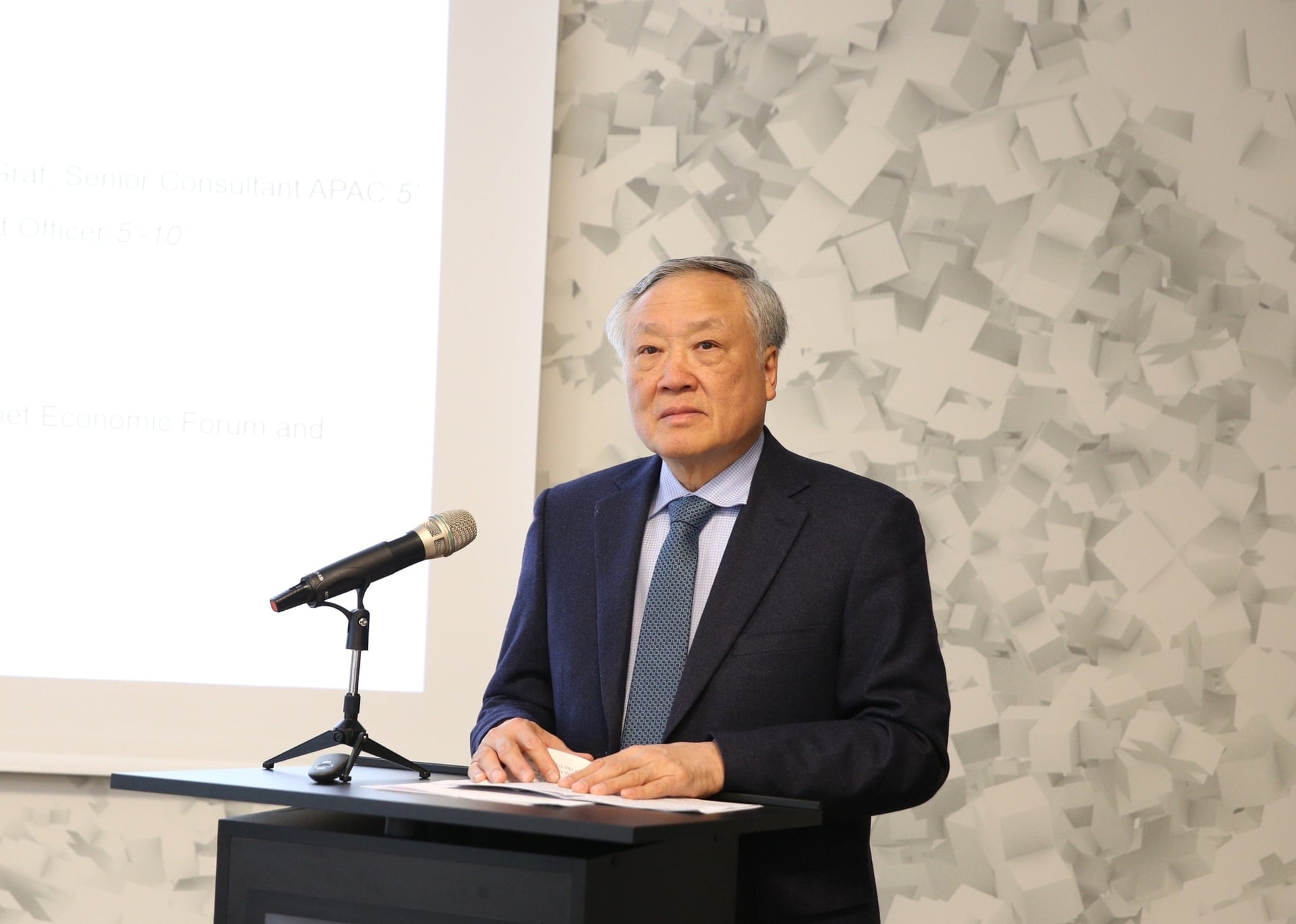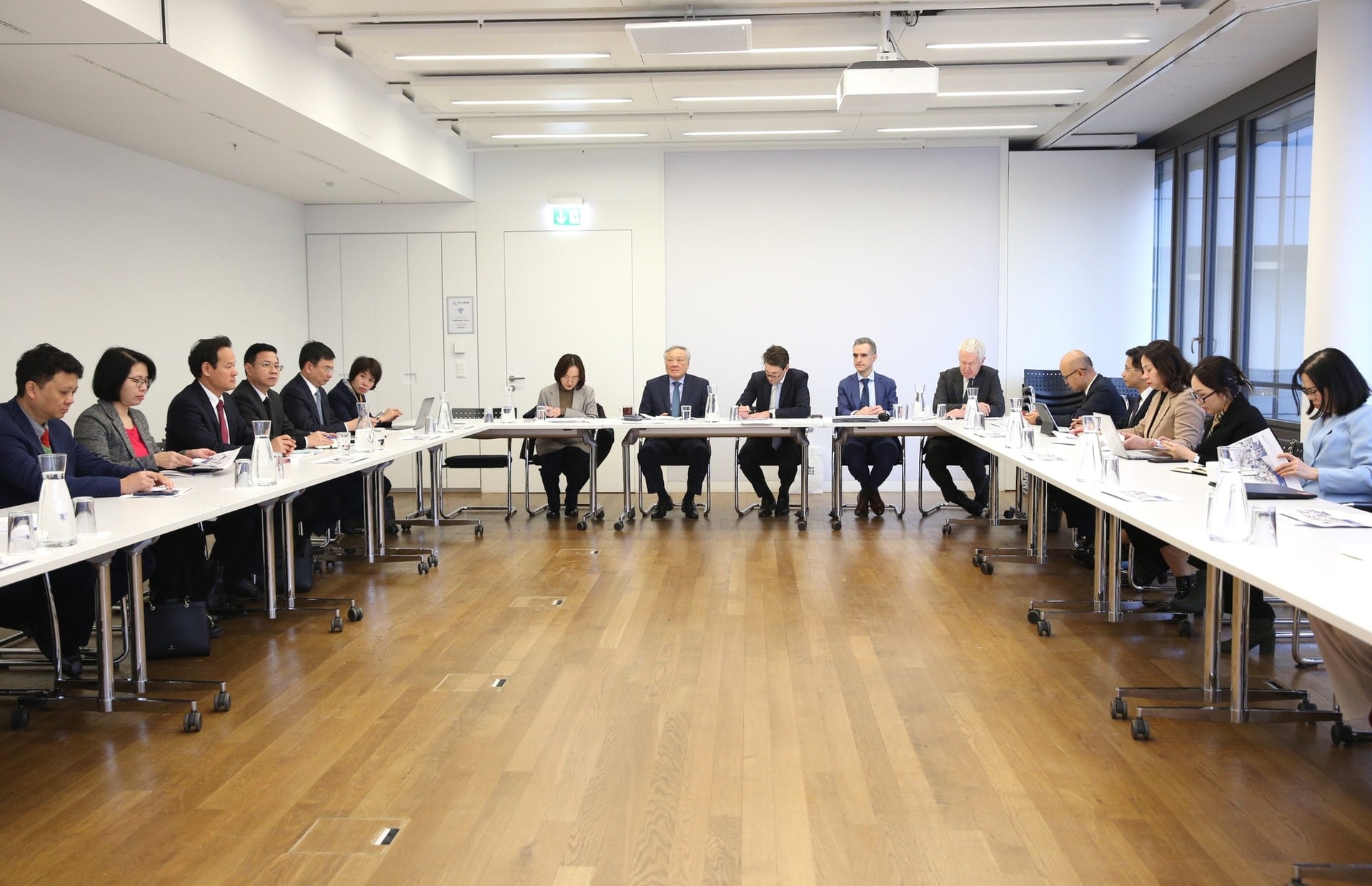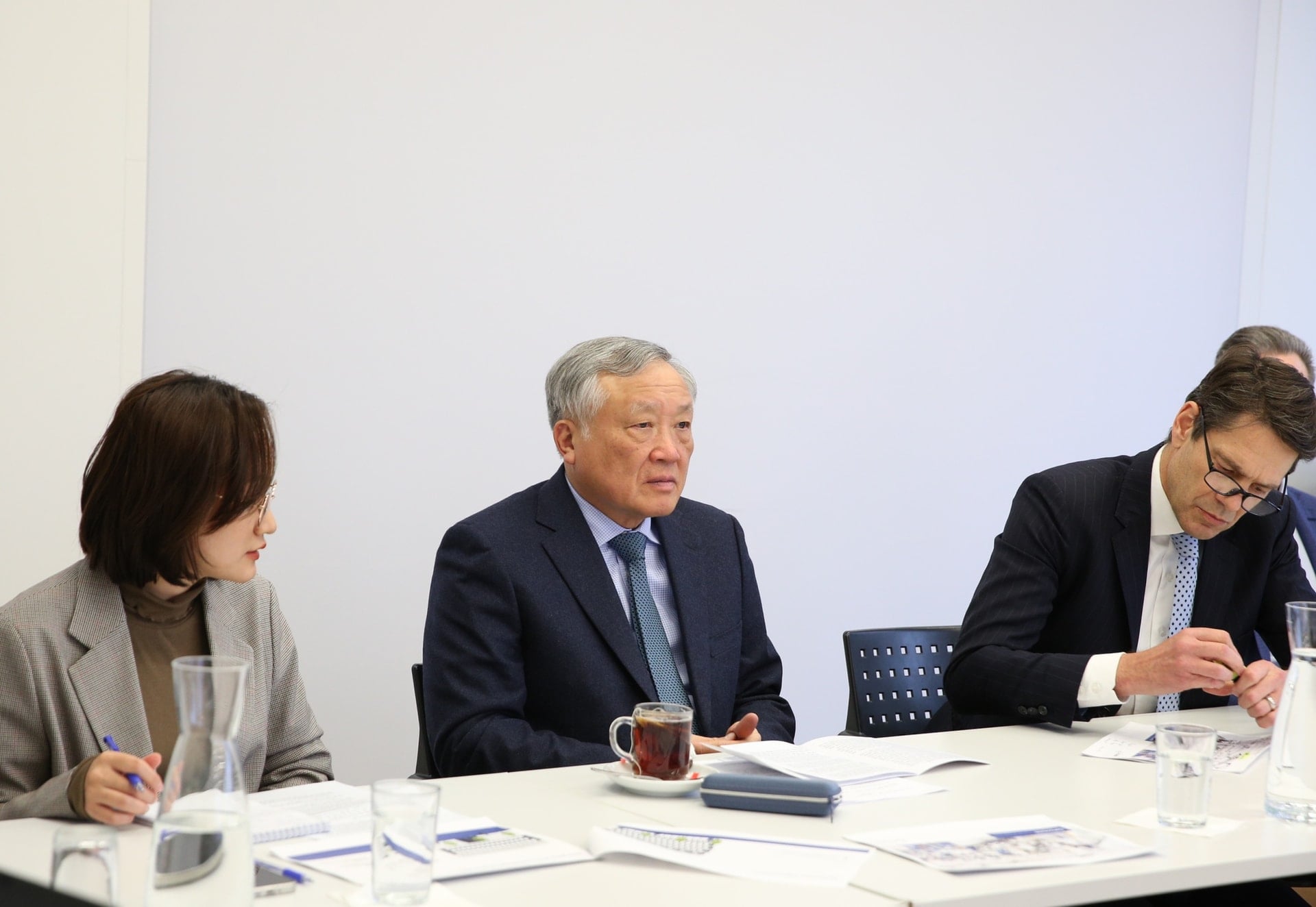 Phó Thủ tướng Thường trực Chính phủ Nguyễn Hòa Bình và các thành viên Đoàn Việt Nam giới thiệu hệ thống chính sách ưu đãi, đặc thù của Trung tâm Tài chính quốc tế Việt Nam, tạo thêm cơ sở để các doanh nghiệp hiểu rõ tiềm năng và triển vọng đầu tư và hoạt động tại Trung tâm.
