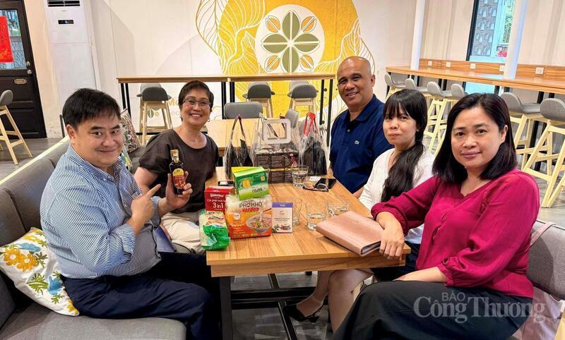 Tham tán thương mại Lê Phú Cường (trái ảnh) gặp gỡ giới thiệu quảng bá hàng Việt Nam đến các nhà phân phối Philippines.