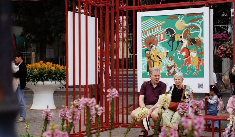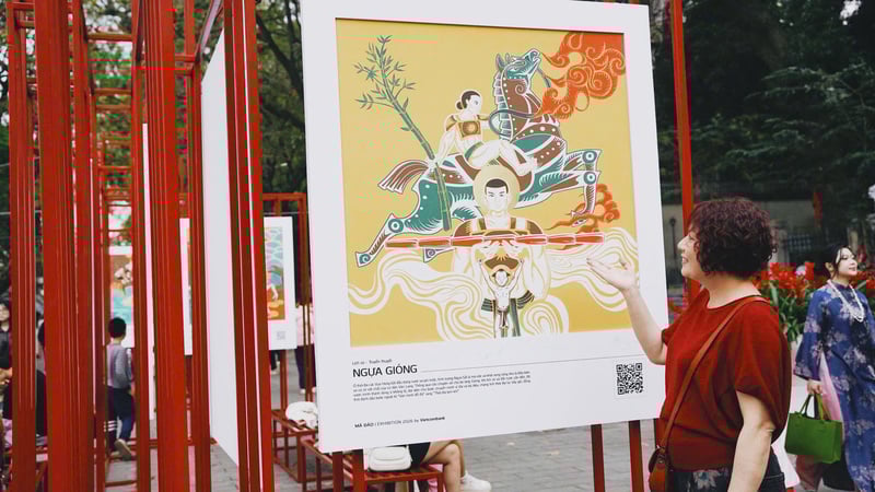 Thông qua thao tác quét QR, câu chuyện và giá trị văn hóa ẩn sau mỗi bức tranh được giới thiệu, giúp người xem hiểu rõ hơn về hình tượng và thông điệp của tác phẩm.