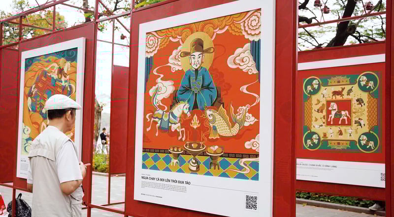 Mỗi bức tranh là một câu chuyện lịch sử về hình tượng ngựa trong dân gian, gắn liền với lịch sử dân tộc, đời sống văn hoá. Ảnh: Diệu Linh