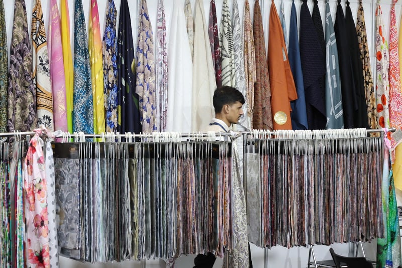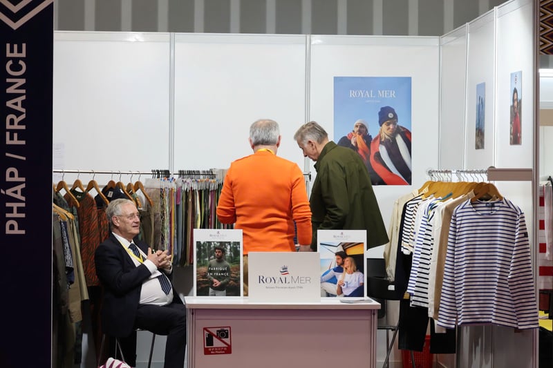 Một gian hàng quốc tế được trưng bày, giới thiệu sản phầm thời trang tại VIATT 2026.