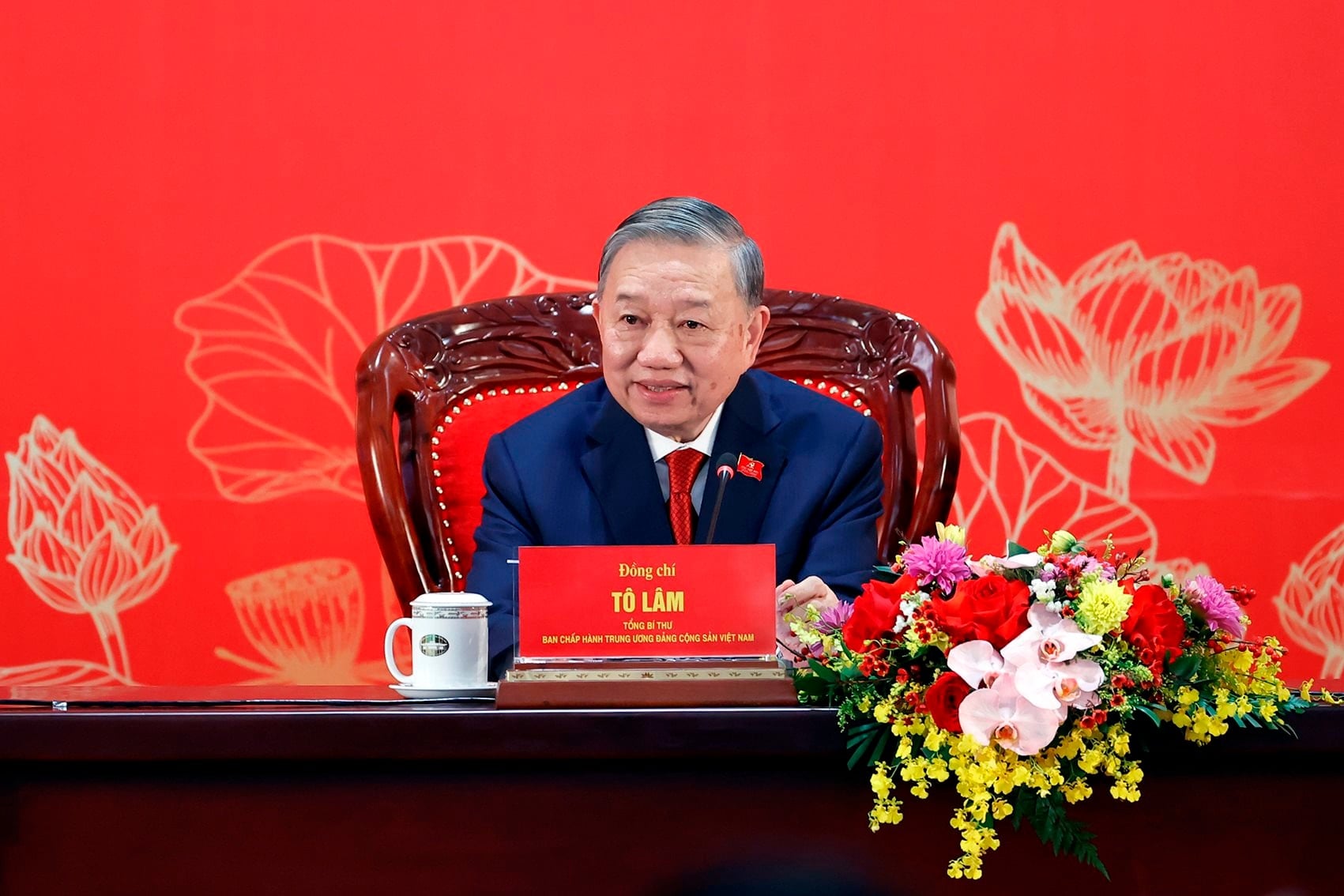 Tổng Bí thư bày tỏ tin tưởng, với sức mạnh cội nguồn lịch sử dân tộc, với bề dày truyền thống của gần một thế kỷ lãnh đạo đất nước Việt Nam của Đảng Cộng sản Việt Nam, với sự ủng hộ, chung sức, đồng lòng của toàn thể nhân dân, với sự cổ vũ, động viên, hợp tác của đông đảo bạn bè quốc tế và nhân dân tiến bộ trên thế giới, chúng ta nhất định sẽ thực hiện thắng lợi Nghị quyết Đại hội đại biểu toàn quốc lần thứ XIV của Đảng, nhất định sẽ xây dựng thành công một nước Việt Nam xã hội chủ nghĩa hòa bình, độc lập, dân chủ, giàu mạnh, văn minh và hạnh phúc.