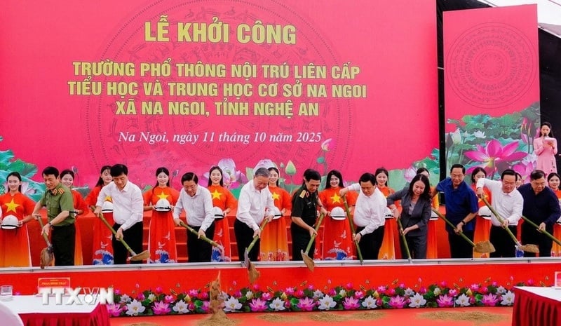 Theo TTXVN, ngày 11/10, Tổng Bí thư Tô Lâm đã dự Lễ khởi công xây dựng Trường Phổ thông nội trú liên cấp Tiểu học và Trung học cơ sở Na Ngoi tại xã Na Ngoi (tỉnh Nghệ An).