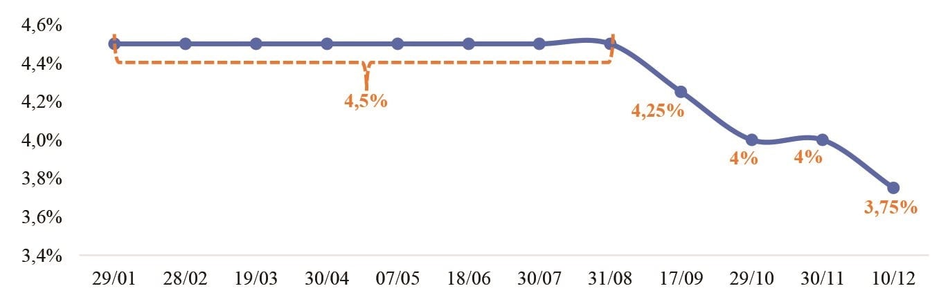 Hình 2. Diễn biến lãi suất của FED năm 2025