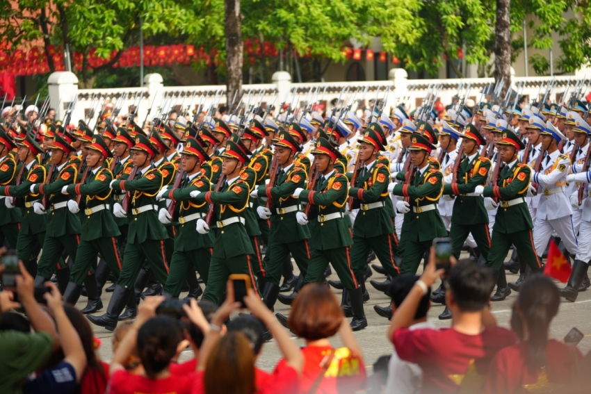 Tiếp theo là 22 khối đi bộ của Quân đội nhân dân Việt Nam, dẫn đầu là xe chỉ huy và xe Tổ Quân kỳ toàn quân. Khối Quân kỳ do Thượng tướng Nguyễn Hồng Thái, Ủy viên Trung ương Đảng, Ủy viên Quân ủy Trung ương, Thứ trưởng Bộ Quốc phòng chỉ huy dẫn đầu các khối đại diện cho Quân đội nhân dân Việt Nam anh hùng và Dân quân tự vệ.