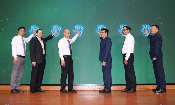 Lãnh đạo Sở Công Thương TP. Hồ Chí Minh - HUIT và các đại biểu thực hiện nghi thức khai giảng "Khóa huấn luyện các kỹ năng khởi nghiệp, đổi mới sáng tạo". Ảnh: Thanh Minh.