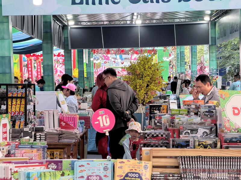 Nhiều em nhỏ được bố mẹ dẫn đi cùng, vừa tham quan, check-in, vừa mua sách những ngày đầu năm mới trong dịp Tết Nguyên đán 2026.