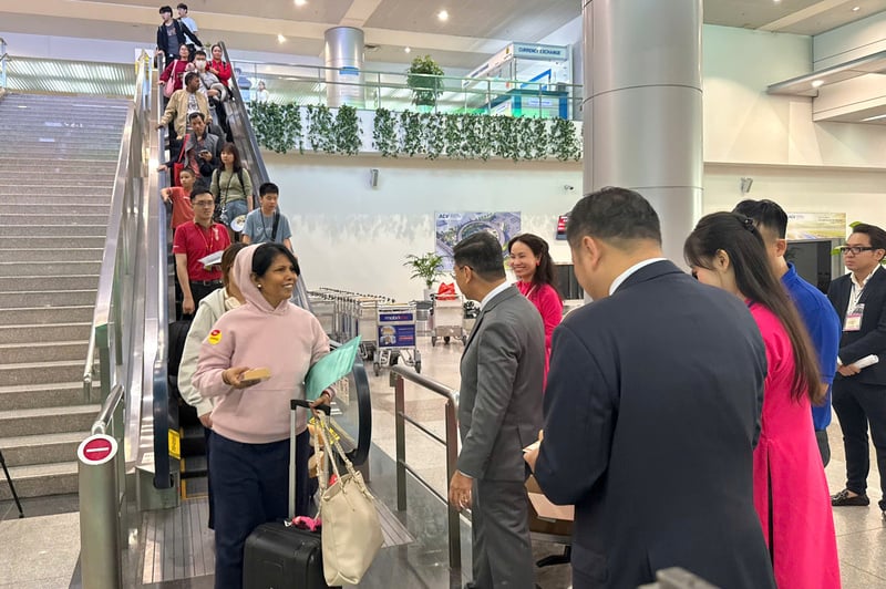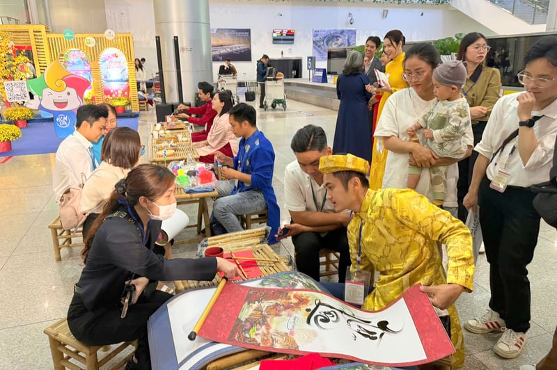 Ngay khi vừa hạ cánh, du khách được mời thưởng thức trà đạo, bánh mứt ngày Tết, xem ông đồ viết thư pháp, trải nghiệm nặn tò he và chụp hình lưu niệm cùng hai linh vật biểu trưng của du lịch thành phố - Bé Sao và Bé Nón. Những hoạt động giàu tính văn hóa này không chỉ mang đến trải nghiệm thú vị, mà còn góp phần giới thiệu những giá trị truyền thống đặc trưng của Việt Nam đến bạn bè quốc tế.