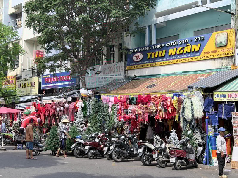 Chỉ còn khoảng hai tuần nữa là đến Giáng sinh, không khí mùa lễ đã bắt đầu trên các con phố của TP. Hồ Chí Minh. Trên đường Hải Thượng Lãn Ông, nơi vốn được xem là "thủ phủ" đồ trang trí Noel nhiều cửa hàng đã sớm bày biện cây thông, vòng nguyệt quế, đèn led và đủ loại phụ kiện rực rỡ...
