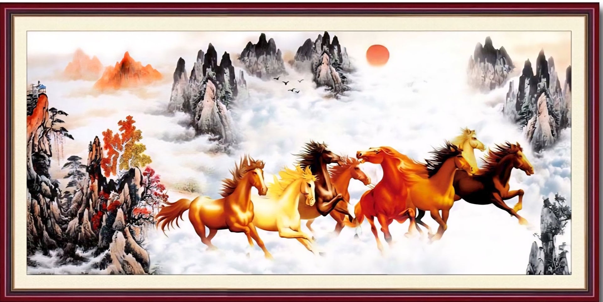 margin: 15px auto;" />“Mã Đáo Thành Công” là thành ngữ phổ biến nhất khi nói về ngựa, thường được dùng để chúc tụng trong kinh doanh và sự nghiệp. Bức tranh Bát Mã (tám con ngựa đang phi) mô tả đàn ngựa vượt qua sóng gió, hàm ý quay về mang theo chiến thắng sau một hành trình dài (Ngựa về ắt là thành công).