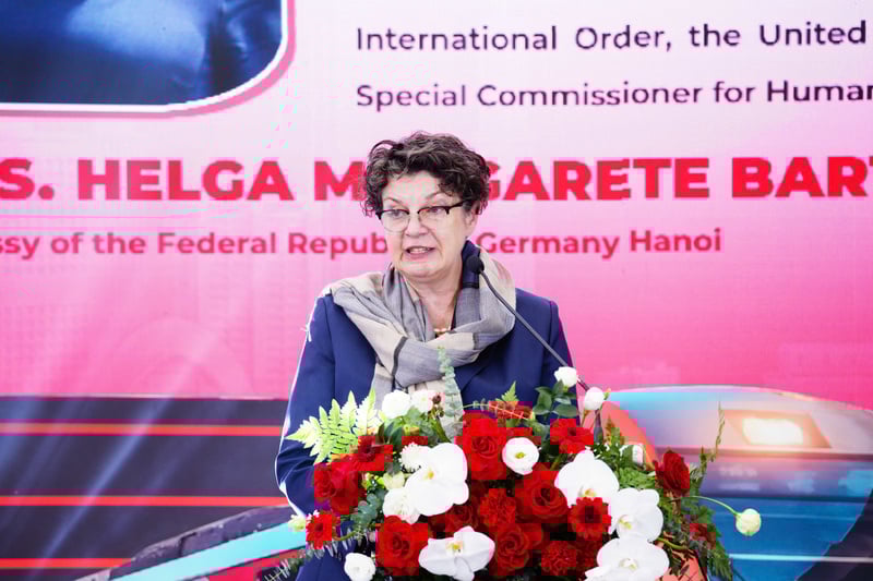 Bà Helga Margarete Barth - Đại sứ Đặc mệnh Toàn quyền Cộng hoà Liên bang Đức tại Việt Nam phát biểu tại triển lãm. Ảnh: Thái Mạnh
